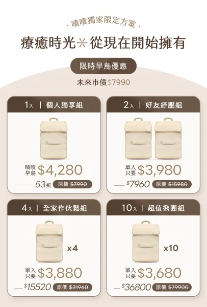 現在加入募資,早鳥53折優惠,只要 NT$ 4,280 就能把專屬按摩師帶回家。每天只要花 15 分鐘,就能讓身體重新充電,趁優惠還在,立刻搶購!